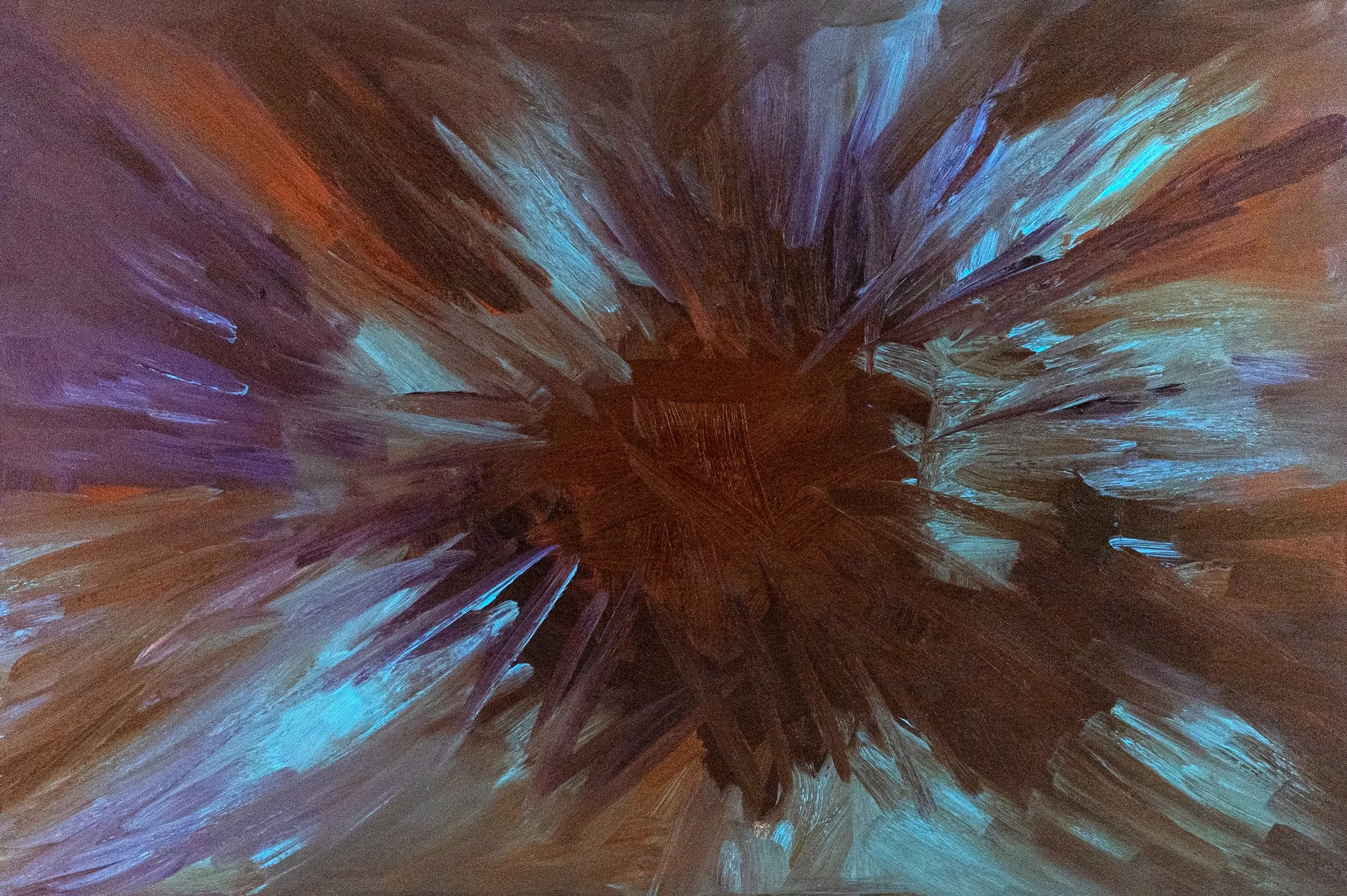 Jenay’s painting style is rooted in energy, color, and texture, creating a strong emotional atmosphere within each work. Location influences the work both within and without — inner presences of healing and the meeting of dark and light shaping movement, tone, and form. Shifts in mood create contrast throughout her paintings, allowing each piece to hold layered experience and invite viewers into their own.